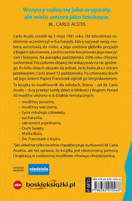 Ta książka to modlitewnik dla młodych, którzy – jak bł. Carlo Acutis – chcą przeżyć każdy dzień w bliskości z Bogiem.