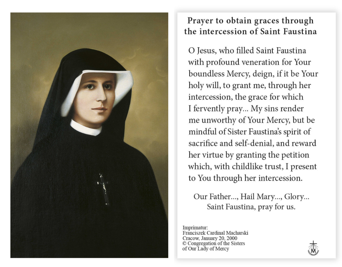 The prayer to obtain graces through the intercession of St. Faustina is printed on the back.