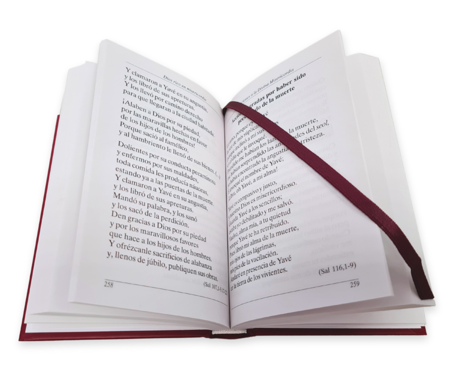 Un completo libro de oraciones con meditaciones que revelan la misericordia de Dios en sus obras, incluyendo la creación, la salvación, la Santa Iglesia, cada sacramento y el destino del hombre para la comunión con Dios en la tierra y en la eternidad. La devoción a la Divina Misericordia se describe en detalle, junto con su esencia y las formas proporcionadas por Santa Sor Faustina: la imagen de Jesús Misericordioso, la Fiesta de la Divina Misericordia, la Coronilla de la Divina Misericordia, la Hora de la Misericordia y la forma de difundir la devoción a la Misericordia. Jesús adjuntó grandes promesas a cada una de ellas, siempre que cultivemos una actitud de confianza en Dios y un amor activo al prójimo.