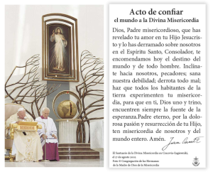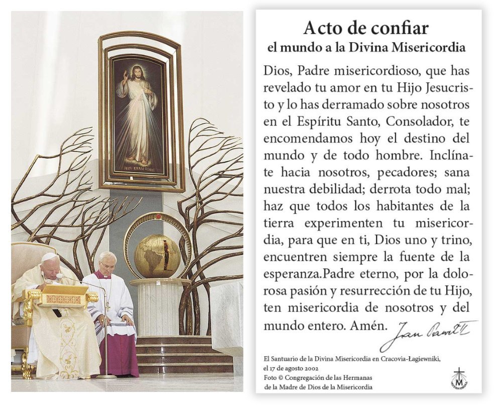 En el reverso hay una oración de encomendar el mundo a la misericordia de Dios.