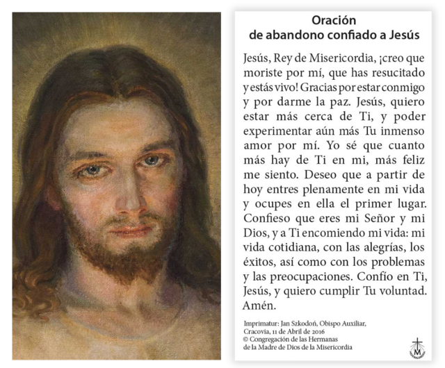 En el reverso hay una oración de entrega de la vida a Jesús.