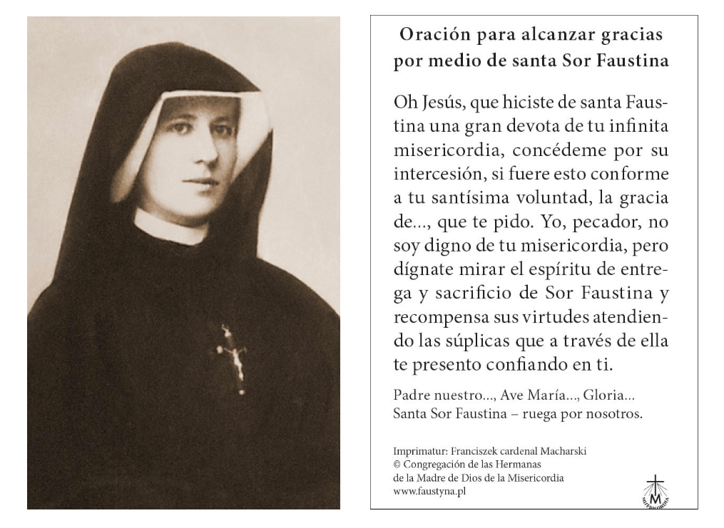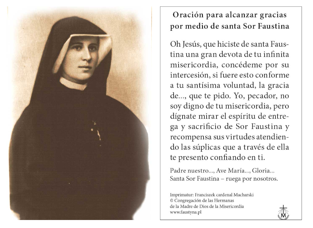 Imagen Sor Faustina canonización Oración