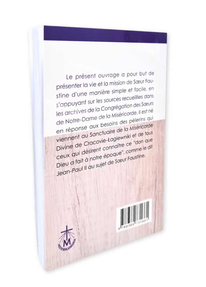 Le présent ouvrage a pour but de présenter la vie et la mission de Sœur Faustine d’une manière simple et facile, en s’appuyant sur les sources recueillies dans les archives de la Congrégation des Sœurs de Notre-Dame de la Miséricorde. Il est né en réponse aux besoins des pèlerins qui viennent au sanctuaire de la Miséricorde Divine de Cracovie-Łagiewniki et de tous ceux qui désirent connaître ce „don que Dieu a fait à notre époque“, comme le dit Jean-Paul II au sujet de Sœur Faustine.