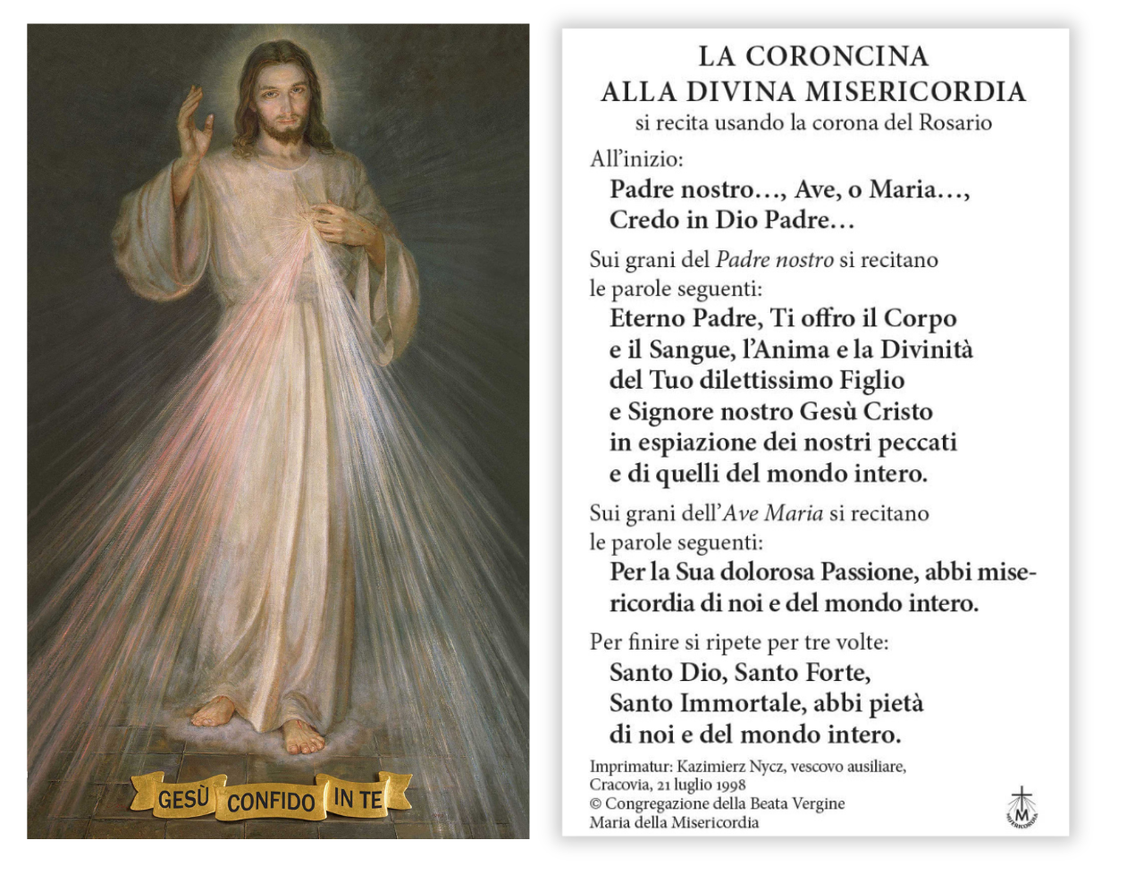 (IT) Immaginetta - Gesù Misericordioso (Coroncina)
