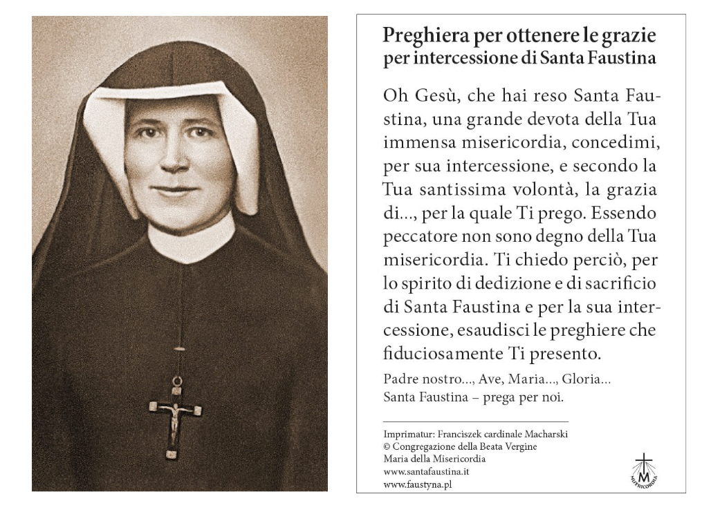 Immaginetta con la fotografia di santa Suor Faustina.