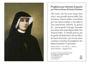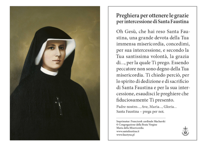 Immaginetta con il ritratto di santa Suor Faustina. Sul retro invece la preghiera di intercessione.