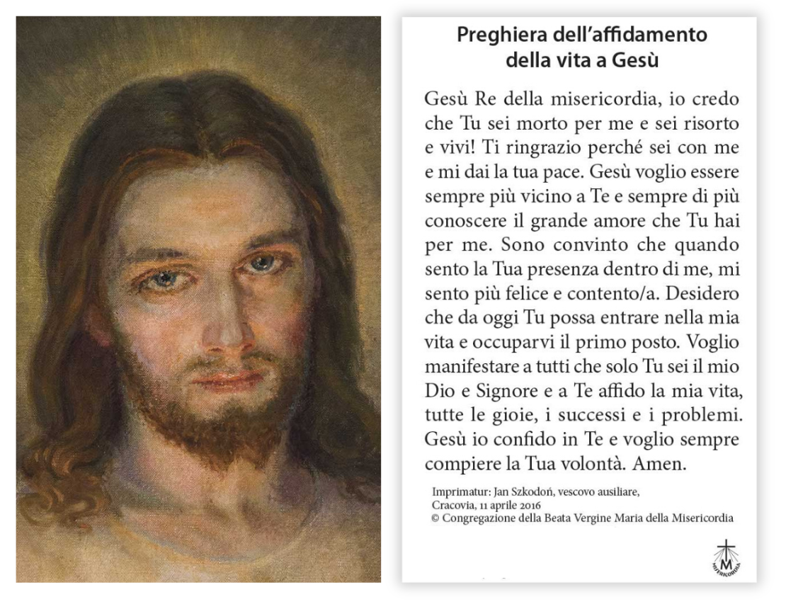 Sul retro si trova la preghiera di affidamento della propria vita a Gesù.