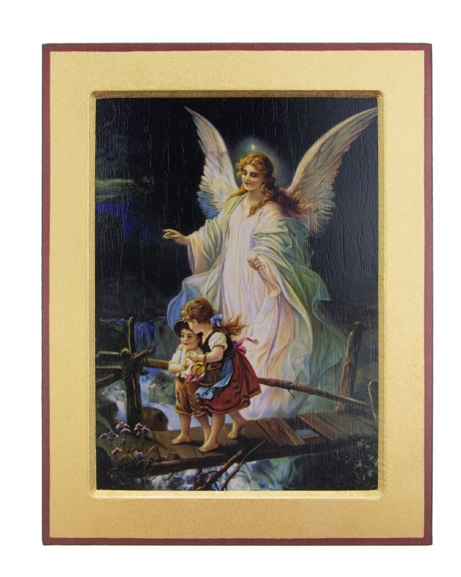 Ikona z wizerunkiem Anioła Stróża czuwającego nad dziećmi.