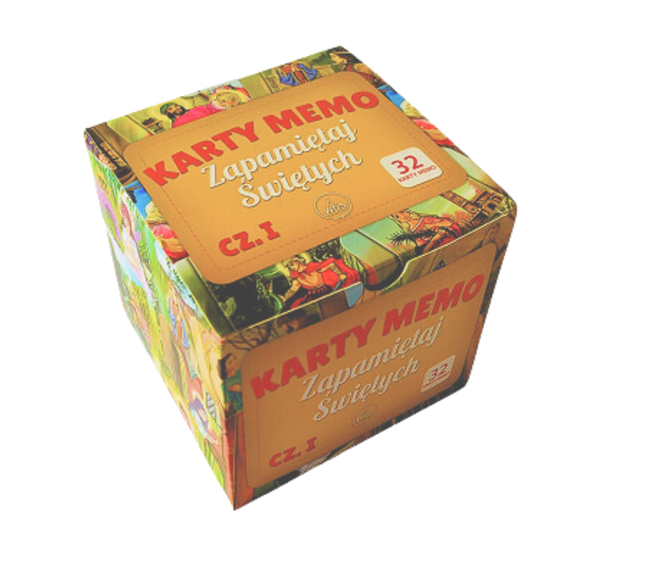 W zestawie znajdziesz 32 karty memo (16 par) z poszczególnymi wizerunkami świętych: