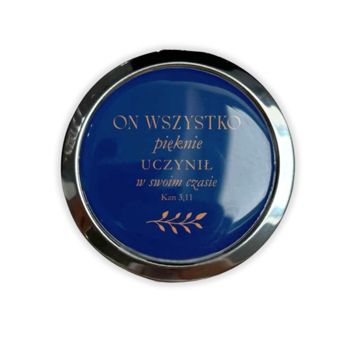 - Inspirujący Werset: Lusterko ozdobione jest cytatem z Księgi Kaznodziei: „On wszystko pięknie uczynił w swoim czasie” (Kzn 3,11), który przypomina o harmonii i doskonałości, jaką Bóg wnosi do naszego życia.