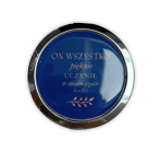 Pozwól sobie na chwilę duchowego wytchnienia z okrągłym, metalowym lusterkiem kieszonkowym ozdobionym inspirującym wersetem biblijnym.