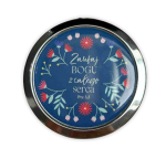 Odkryj siłę codziennej inspiracji z okrągłym, metalowym lusterkiem kieszonkowym z wersetem biblijnym.