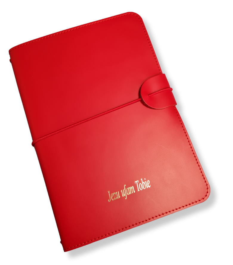 Z tłoczonym na okładce napisem: Jezu, ufam Tobie.
