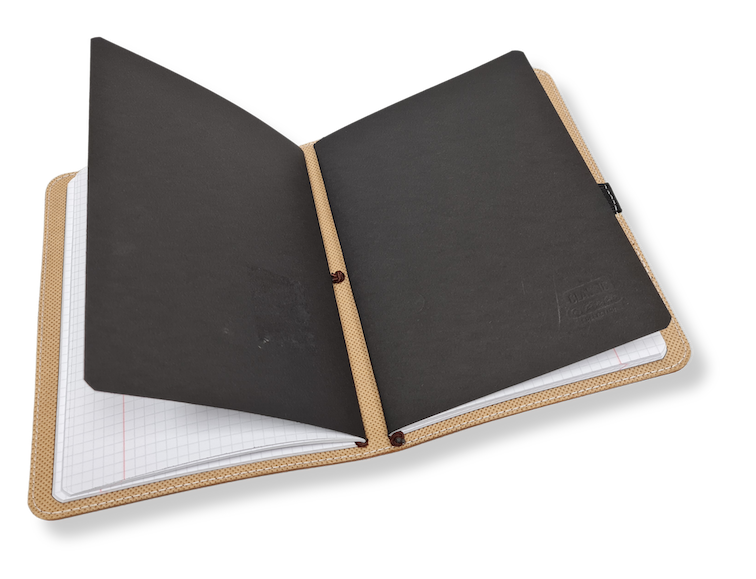 Wewnątrz znajdują się dwa wymienne notesy (A5) 60-kartkowe: jeden w linie, drugi gładki, dzięki czemu okładka może być wykorzystywana w następnych latach.