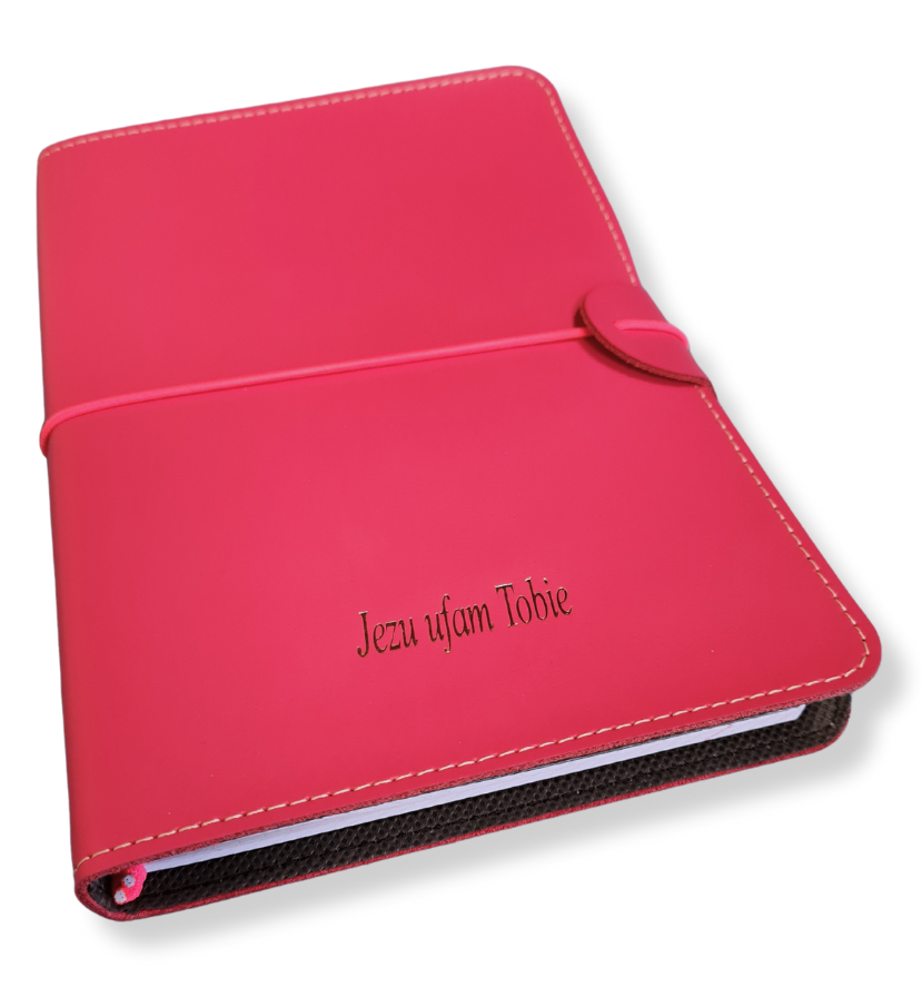 Z tłoczonym na okładce napisem: Jezu, ufam Tobie.