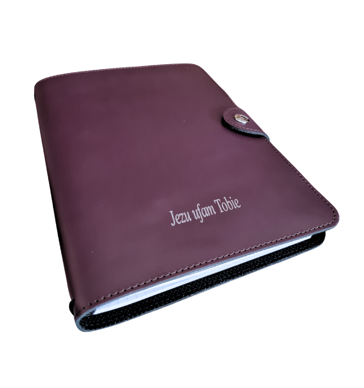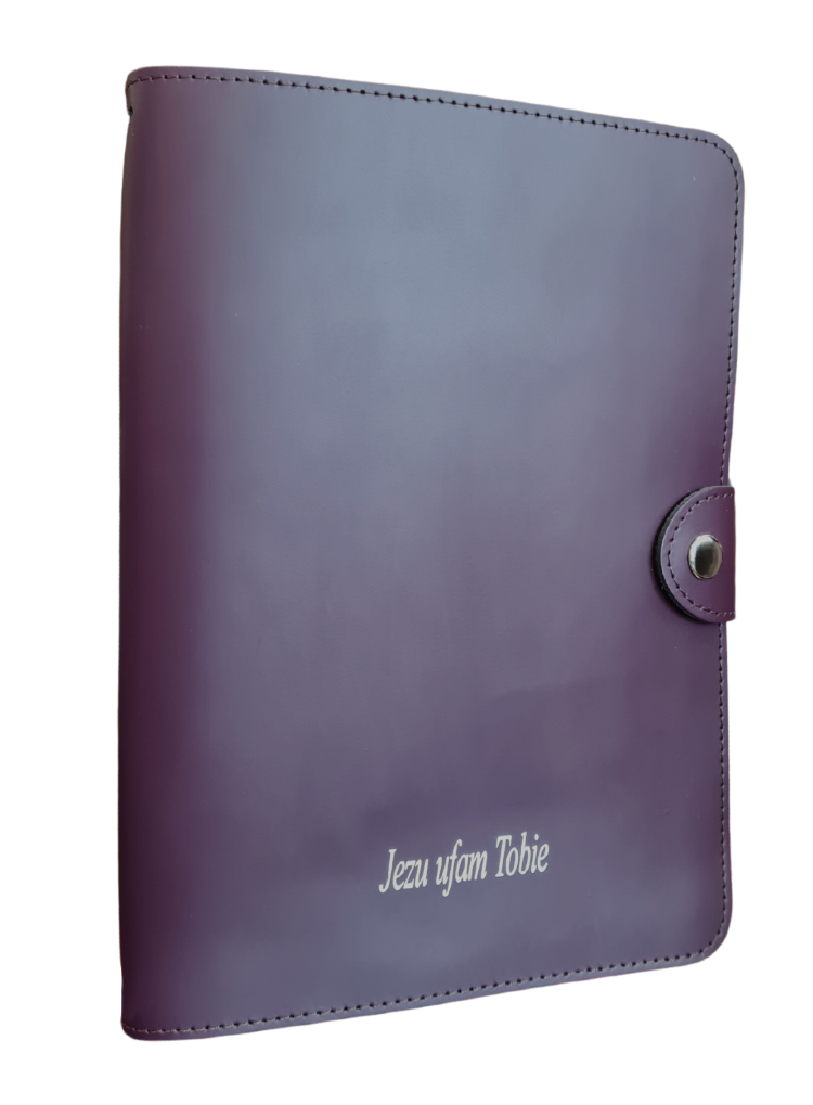 - Na froncie wytłoczony napis: Jezu, ufam Tobie.
