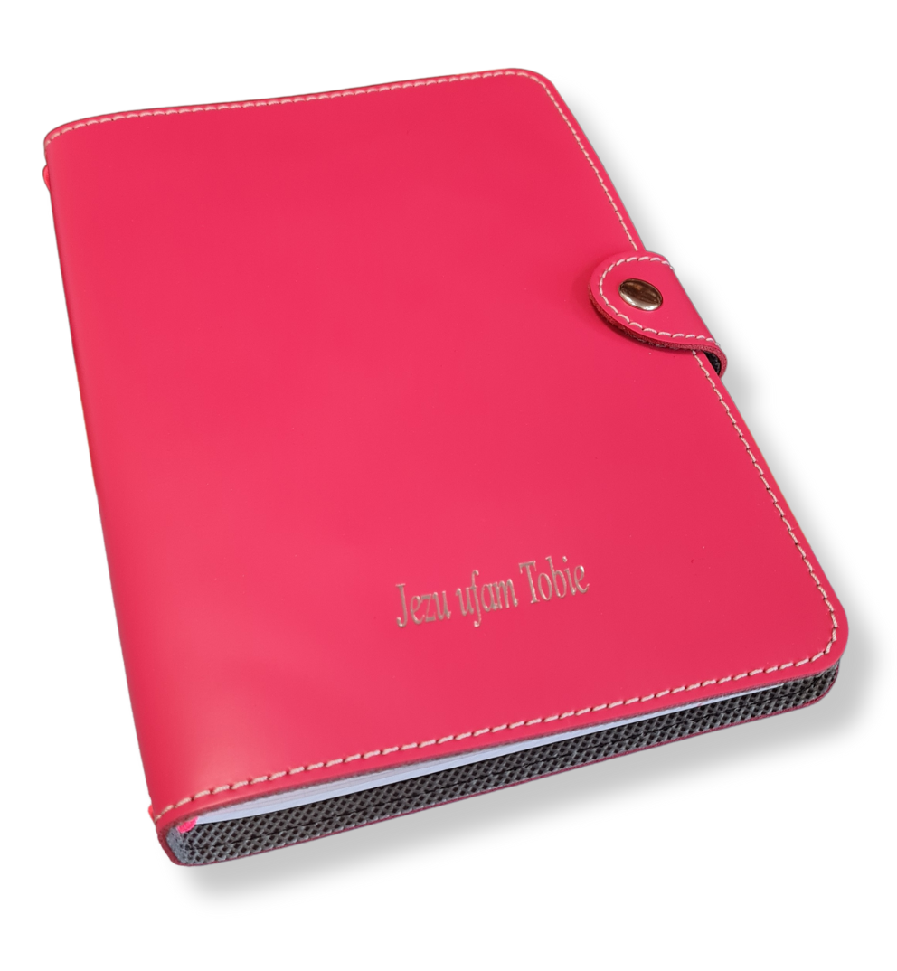- Na froncie wytłoczony napis: Jezu, ufam Tobie.