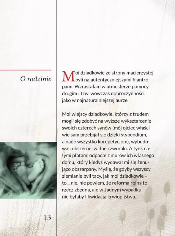 O poczuciu humoru. (...) Na pierwszą kolację (w Warszawskiej Szkole Pielęgniarstwa) podano straszliwą potrawę: śledzie w cieście. Ponieważ jako dziecko uważałam, że jedzenie obrzydliwości kształci charakter i (...) jadłam ukradkiem sól z cukrem – kontynuując więc w tym duchu ? pożerałam śledzie.