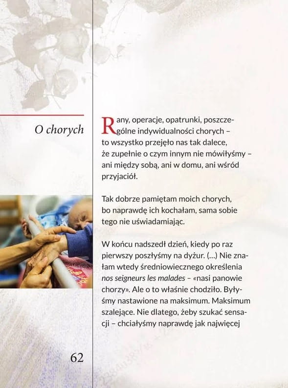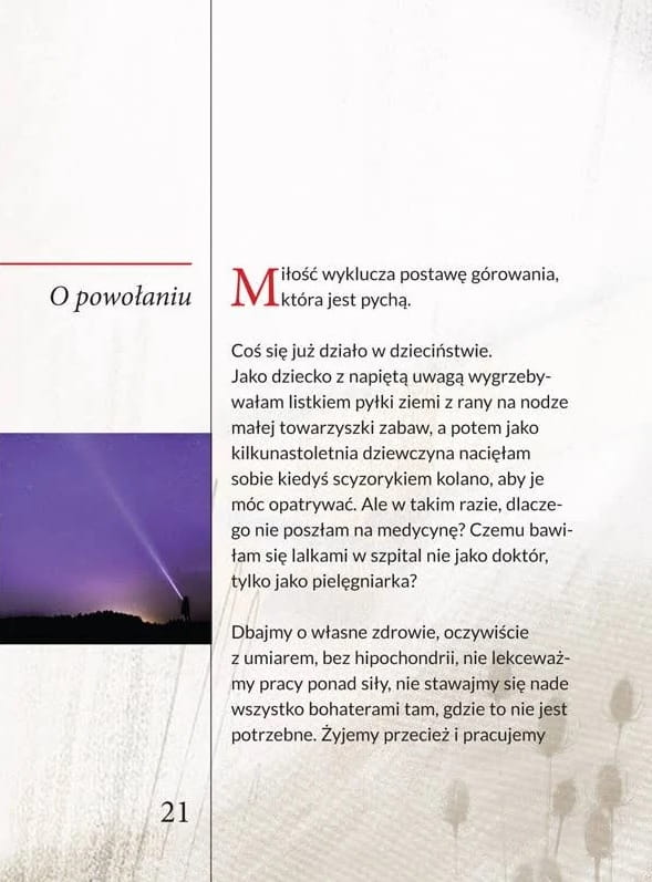 O śmierci. (...) Pielęgniarka wobec cierpień i śmierci zachowuje spokój, powagę i opanowanie. Niech nie zapomina o modlitwie nawet, gdy się da, z domownikami. Módlmy się za tych, co odchodzą, aby Bóg był im łaskawy. I za tych, co nad śmiercią płaczą.
