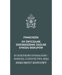 26 październik 2024 r. podpisany został Dokument końcowy XVI Zwyczajne Zgromadzenie Ogólne Synodu Biskupów „Ku Kościołowi synodalnemu – komunia, uczestnictwo, misja”, a papież Franciszek ogłosił, że zostanie on włączony do Magisterium Kościoła w miejsce adhortacji posynodalnej, jaka powstawała w analogicznej sytuacji. Dokument zbiera refleksje ojców synodalnych i ich wskazania, „które – w świetle jego podstawowych założeń – już teraz mogą być przyjęte w Kościołach lokalnych oraz w grupach Kościołów, uwzględniając różnorodne konteksty, to, co już zostało dokonane, oraz to, co wciąż pozostaje do zrobienia, aby coraz lepiej przyswajać i rozwijać styl właściwy misyjnemu Kościołowi synodalnemu”. To szerokie spojrzenie na Kościół katolicki i wsłuchanie się, co „mówi Duch do Kościołów” (Ap 2, 7).