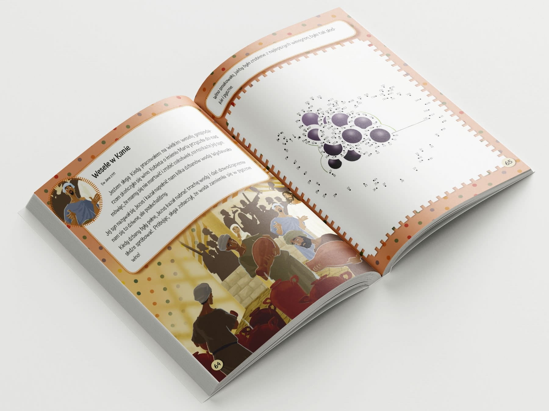 Łamigłówki biblijne – kropka do kropki zapewnią dzieciom godziny zabawnych i ciekawych ćwiczeń, które rozwiną w nich zmysły artysty i odkrywcy, przynosząc jednocześnie cenne lekcje wprost z Bożego Słowa. Łączenie kropek i znane historie z Biblii uzupełnione o żywe, zabawne ilustracje zagwarantują naukę i zabawę, od których twoja pociecha nie będzie mogła się oderwać!