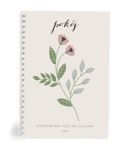 Szukasz notatnika, który pomoże Ci odnaleźć pokój i zachęci do codziennych chwil refleksji z Bogiem? Mój dziennik „Pokój Zostawiam Wam – Kwiat” to wyjątkowy notes, idealny dla osób, które chcą zapisywać swoje myśli, modlitwy i duchowe przemyślenia. Okładka ozdobiona delikatnym motywem kwiatowym i cytatem z Ewangelii św. Jana (J 14,27) „Pokój zostawiam wam, pokój mój daję wam” przypomina o obietnicy pokoju, który Jezus ofiarowuje swoim uczniom.