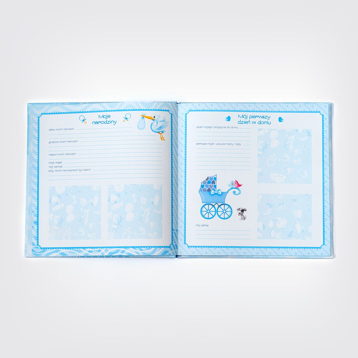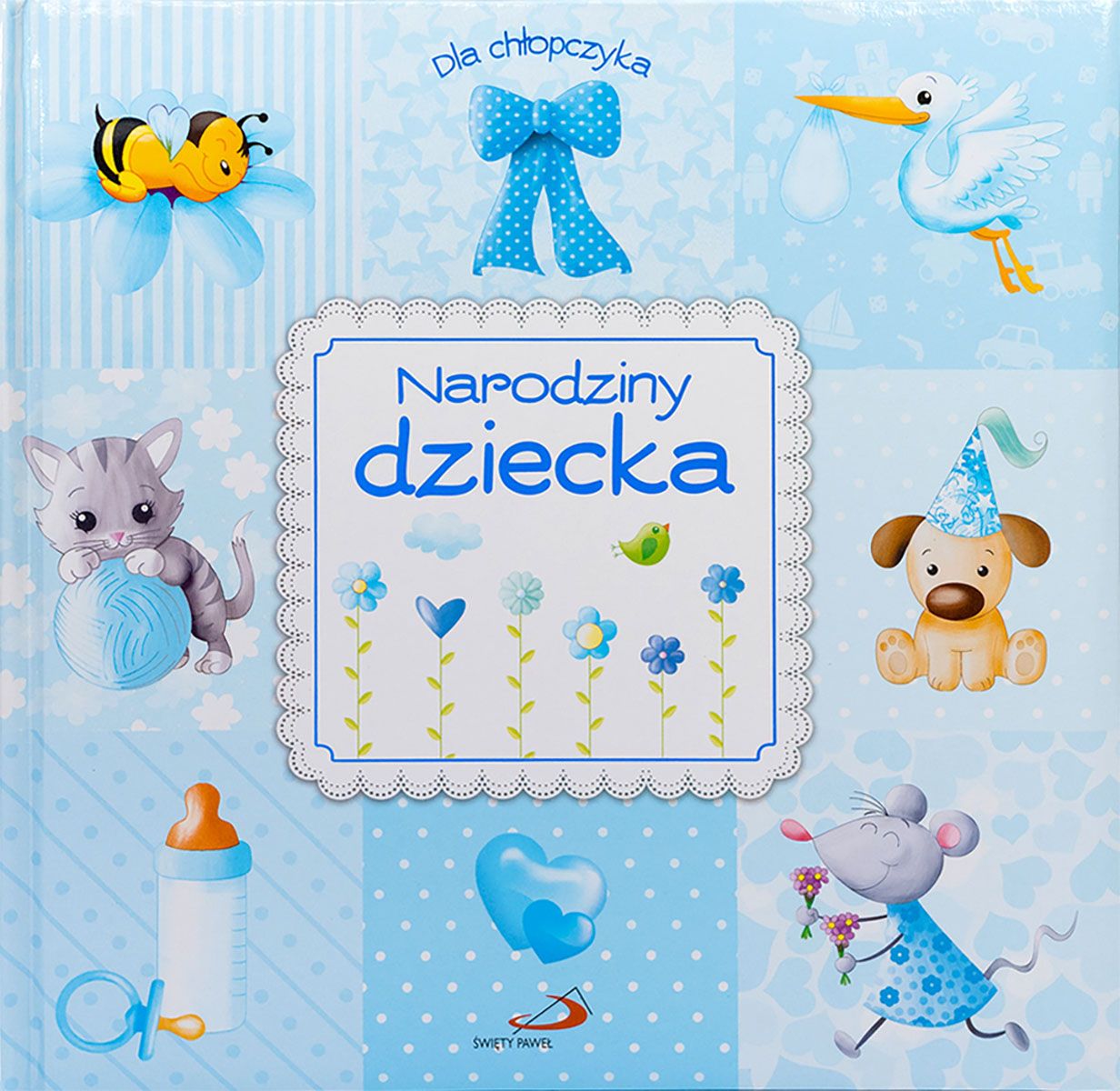 "Dla chłopczyka. Narodziny Dziecka" to pamiątka narodzin wspaniałego chłopczyka, przepięknie zilustrowany album z okazji narodzin syna lub wnuka, dzięki któremu ocalisz od zapomnienia szczególne chwile ukochanego maleństwa. Znajdziesz w nim miejsce na zapisanie ważnych dat i wydarzeń oraz kolorowe ramki na zdjęcia dokumentujące pierwszy rok życia.