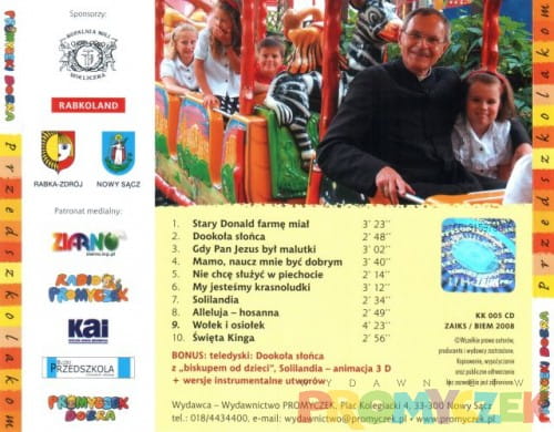 Piosenkę „Dookoła słońca” razem z dziećmi śpiewa ksiądz biskup Antoni Długosz, zwany biskupem od dzieci. Ponadto na płycie znalazł się jeszcze drugi teledysk, prezentujący baśniową krainę Kopalni Soli Wieliczka Solilandię oraz dwie piosenki w formie karaoke.
