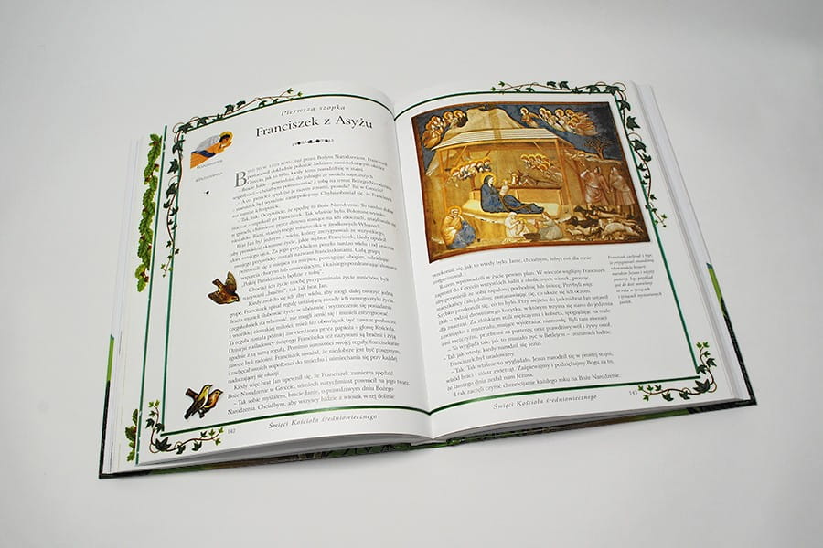 Wspaniałe opowieści o Świętych i innych świadkach wiary chrześcijańśkiej, ubogacone kolorowymi, często archiwalnymi ilustracjami. Wszystkie opisane postacie były przez chrześcijan szanowane i czczone jako ludzie święci, którzy zostali obdarzeni specjalną łaską działania na rzecz Boga i swoich ziemskich braci oraz podążania śladami Jezusa. Z ich historii można nauczyć się wielu rzeczy, które pomogą przeżyć nasze życie tak, jak nas nauczył Pan Jezus.