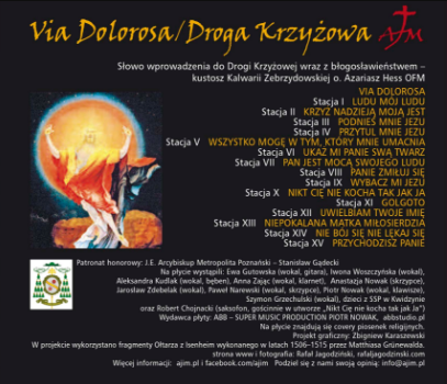 Zbyszek znał bardzo dobrze ten obraz i planował nawet zorganizować wystawę poświęconą twórczości tego średniowiecznego malarza. Grafika płyty powstała w 2 dni. Następnie razem z Ewą wybraliśmy 16 utworów, odpowiednio przyporządkowując je do stacji Drogi Krzyżowej. Do zespołu dołączyły nowe osoby (Iwona – wokal, Ola – bęben, Ania – klarnet, Jarek – wokal, Piotr – wokal) , które w opinii wielu osób wniosły dużo dobrego do całego projektu. Wielką niespodzianką dla słuchających płyty jest gościnny udział Roberta Chojnackiego, znanego i lubianego saksofonisty, w utworze „Nikt Cię nie kocha tak jak Ja”. Przed każdą stacją zamieściliśmy odpowiedni fragment z Pisma Świętego. Z otrzymanych recenzji wiemy, że płyta przypadła do gustu bardzo wielu osobom i bardzo mocno uzależnia , słuchacie ją po kilka razy w ciągu dnia, za co Chwała Panu i cześć Maryi.