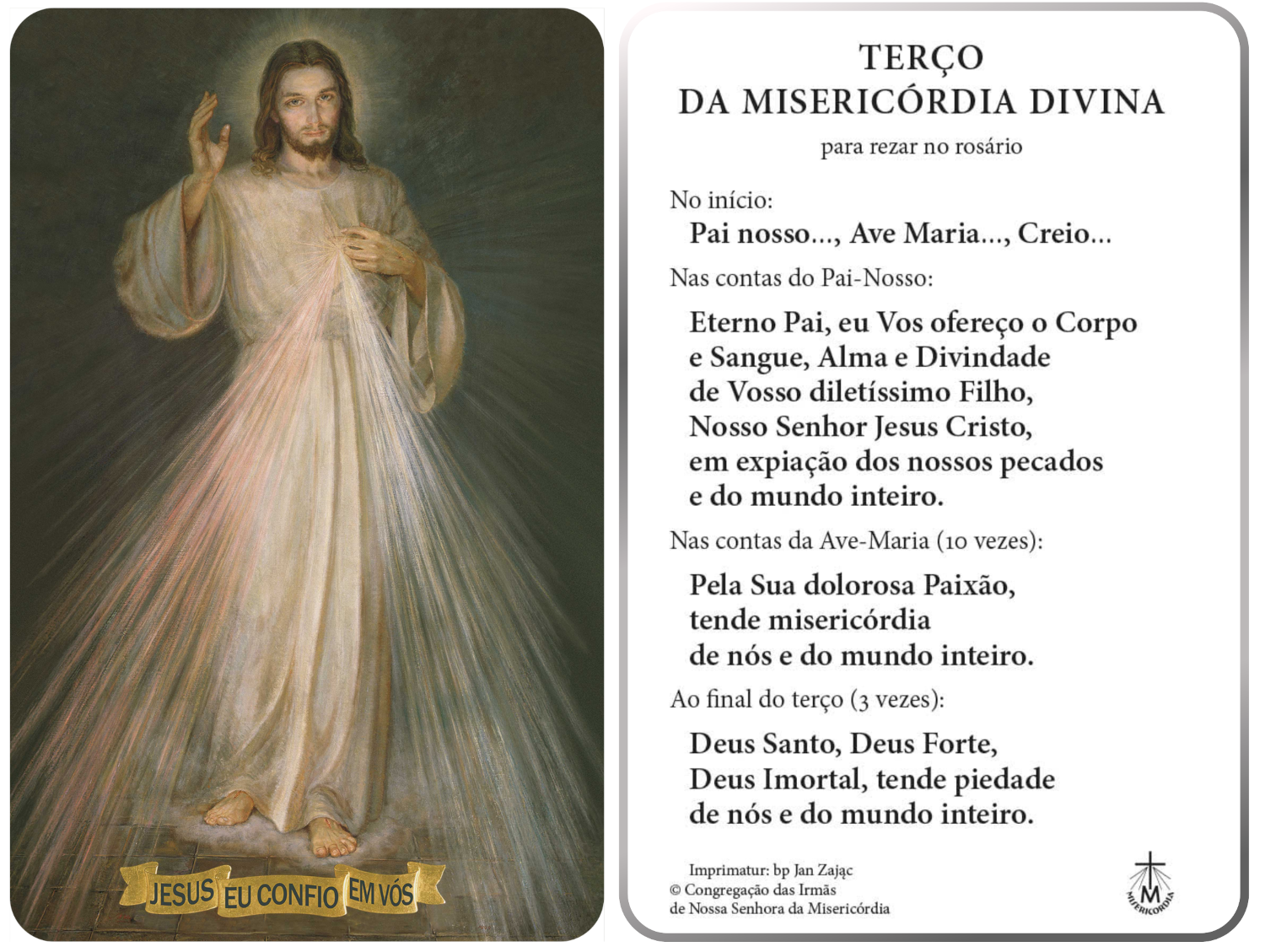 No verso está o texto do Terço da Divina Misericórdia.