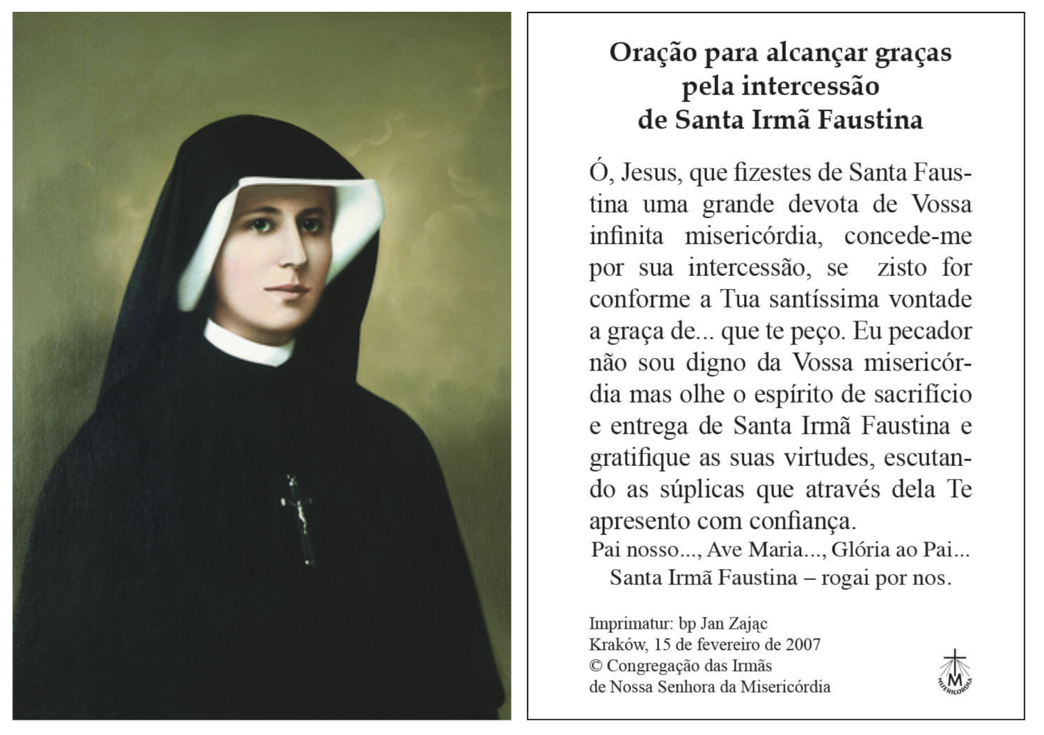 Imagem com o retrato de Santa Irmã Faustina. No verso, em vez disso, a oração de intercessão.