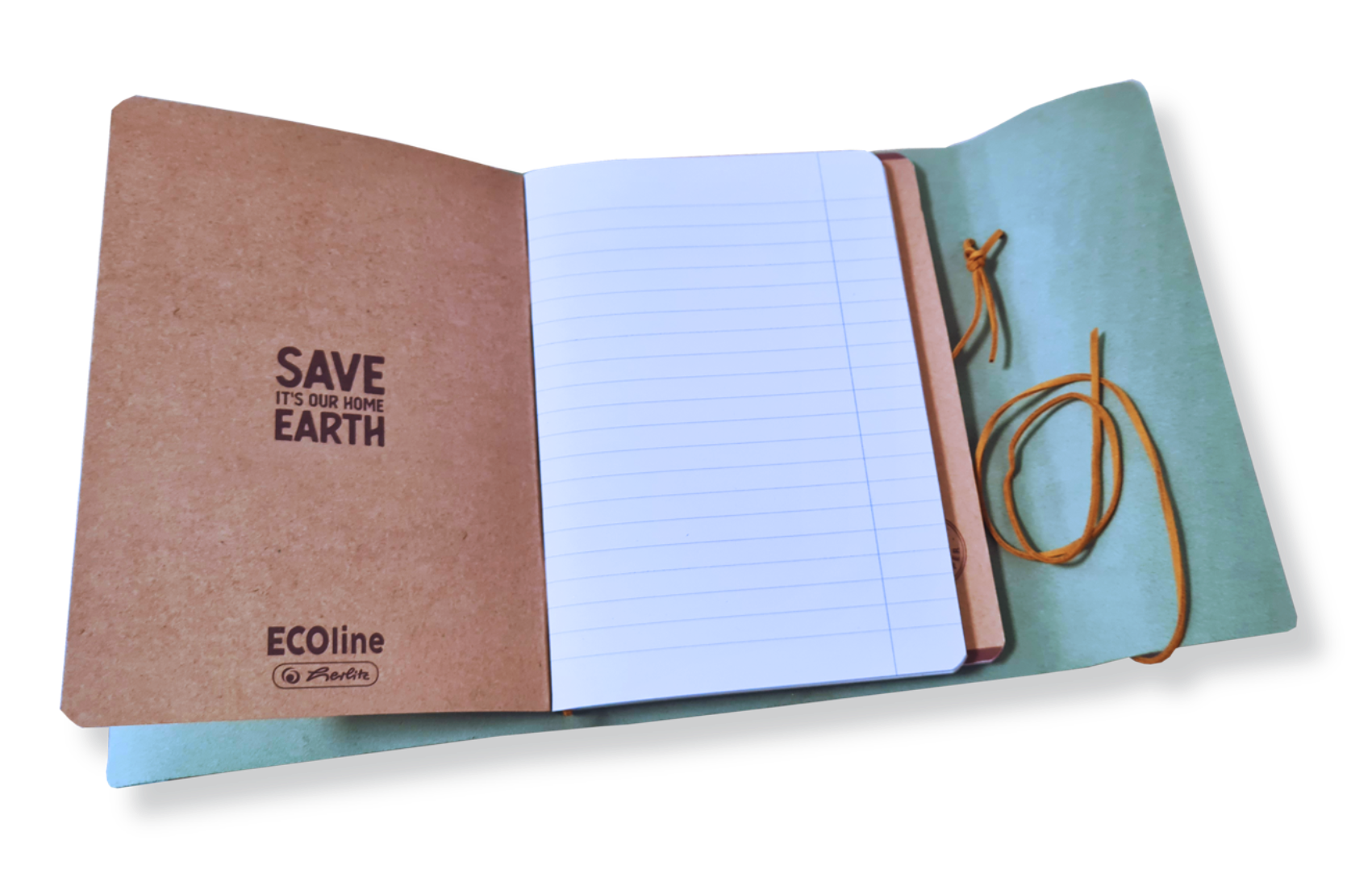 Elegancki notes skórzany w kolorze niebiesko-turkusowym z wiązaną okładką rzemykiem.