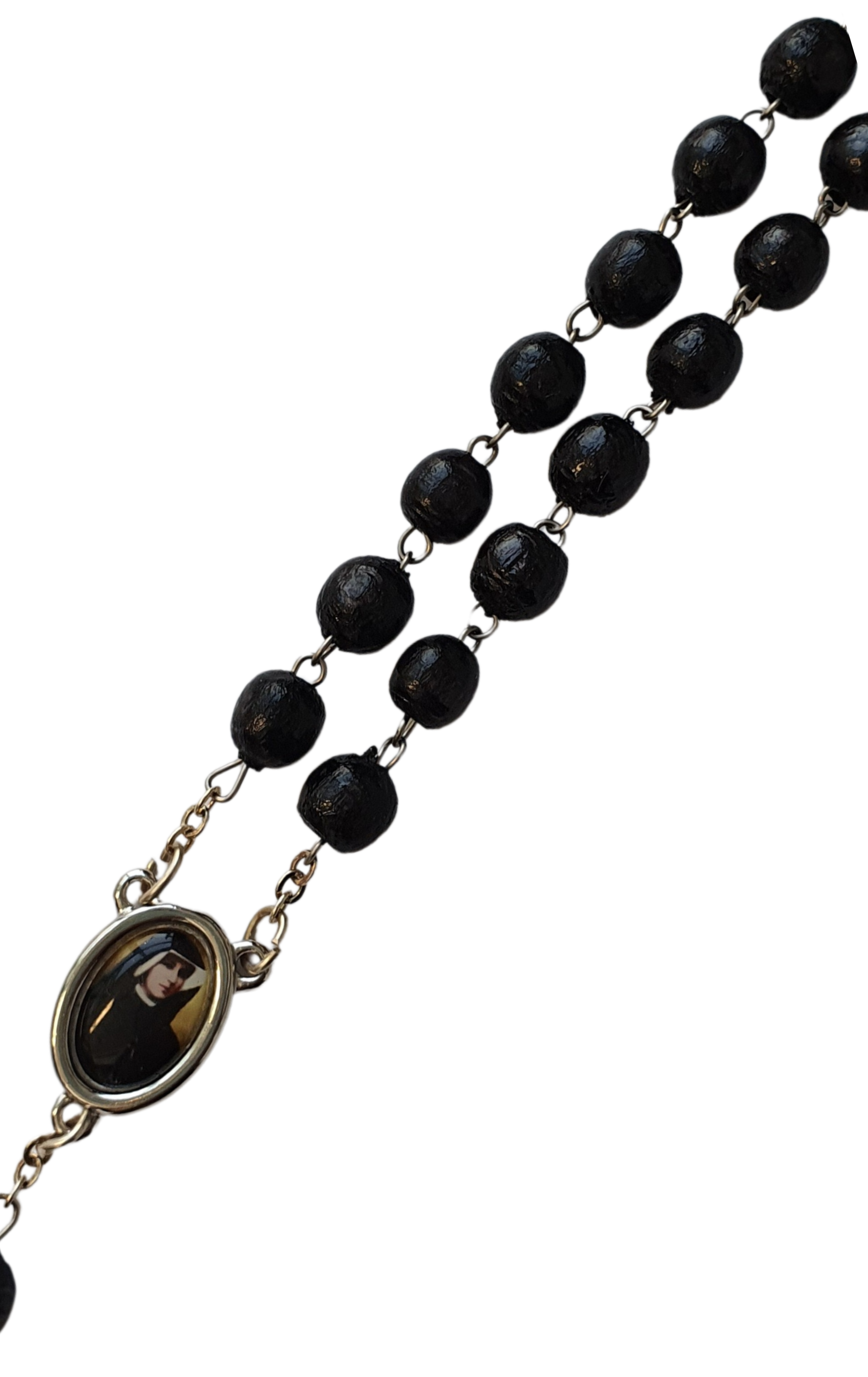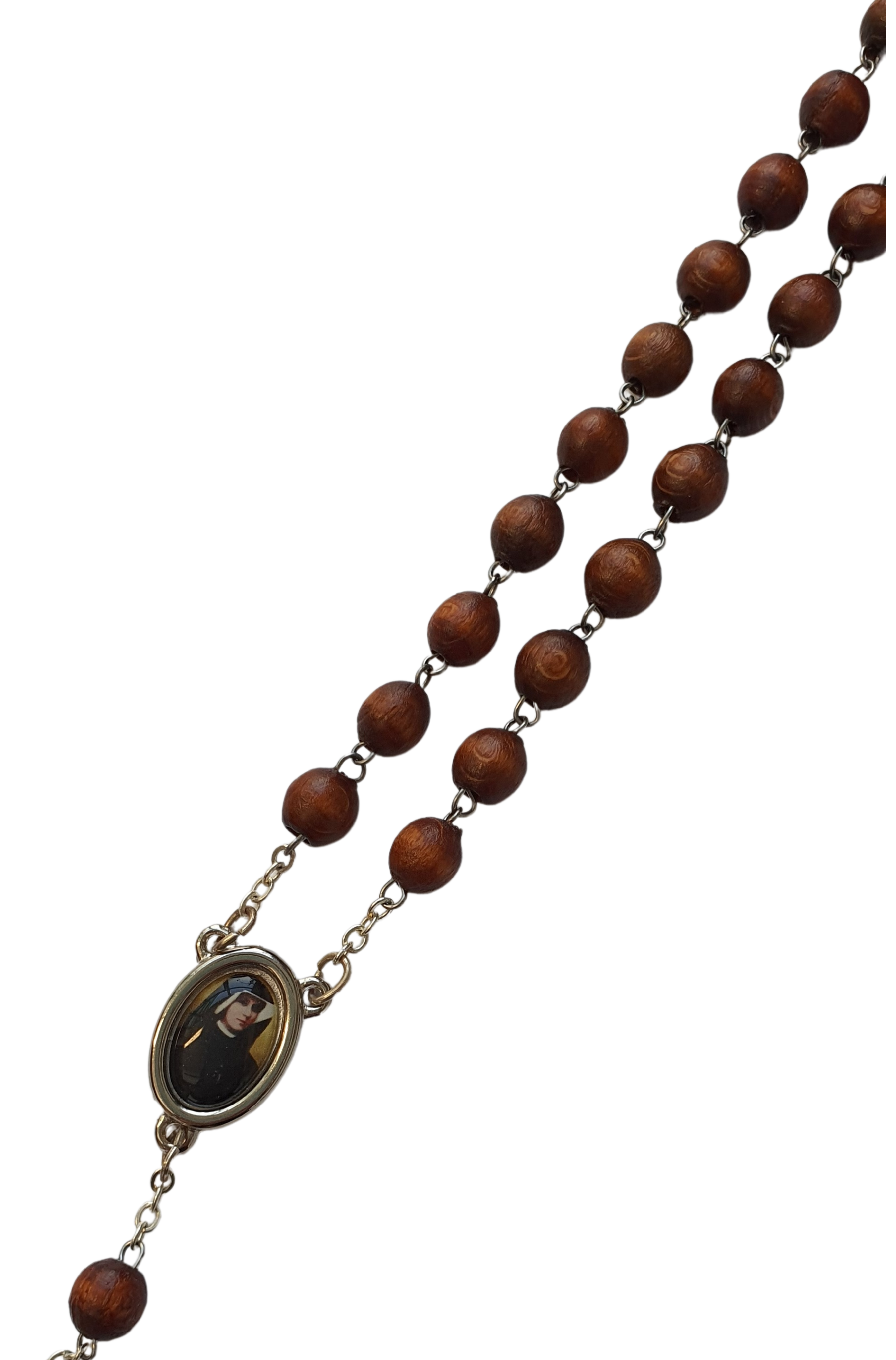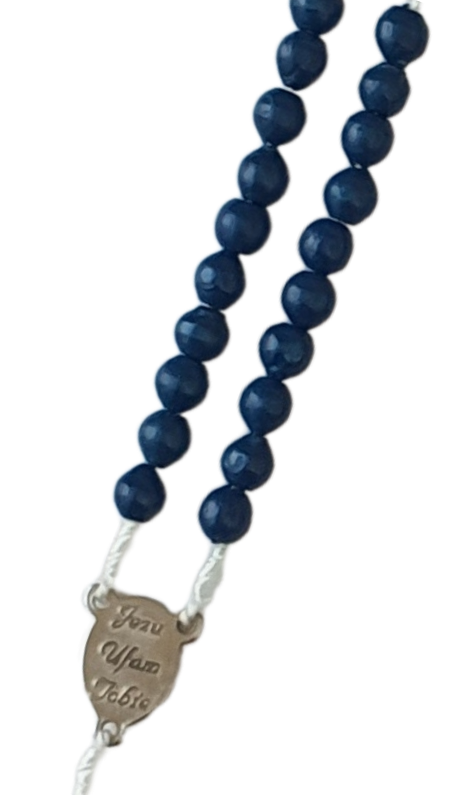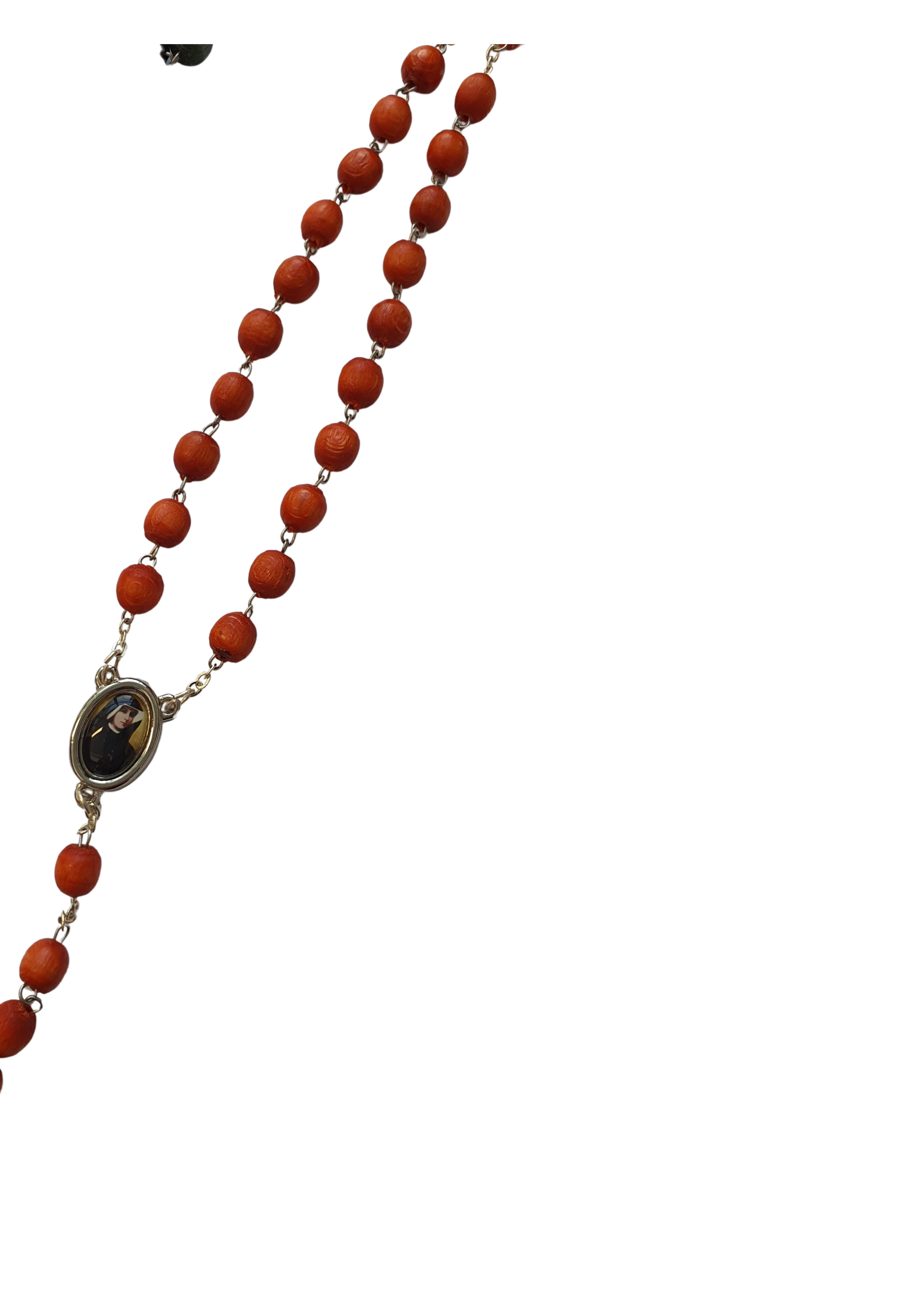 Różaniec/koronka z drewna. Dostępny na sznurku lub łańcuszku, z krzyżykiem lub medalionem w różnych kolorach.